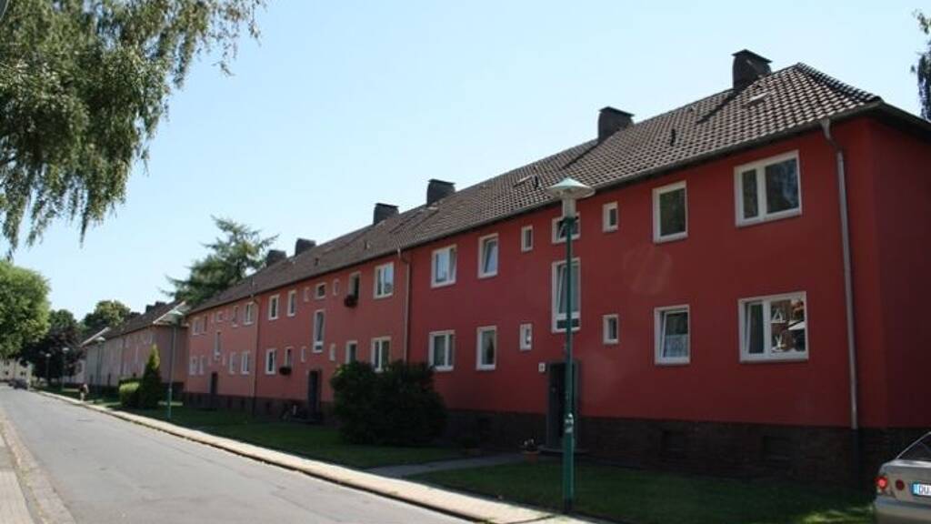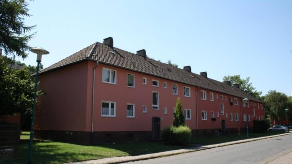 Die Wohnung befindet sich in einem 4-Familien-Haus im Erdgeschoss (Hochparterre). Das Gebäude aus dem Baujahr 1951 liegt in einer ruhigen Nebenstraße eingesäumt von Grünflächen nahe einem Wald (Driesenbusch).