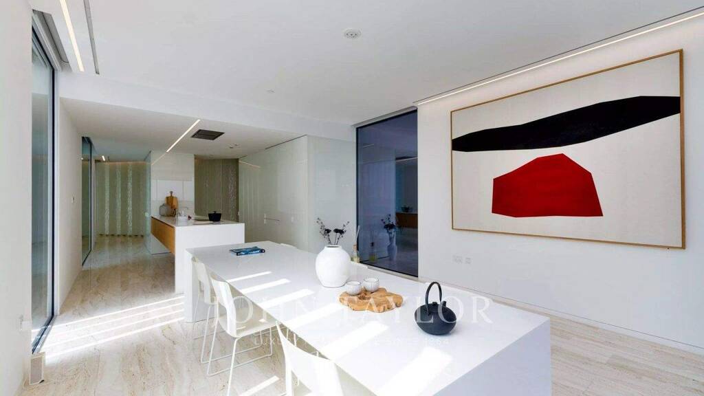 Neben dem Wohnbereich befindet sich ein formelles Esszimmer, das sich auf eine eigene Terrasse erstreckt und den nahtlosen Übergang zwischen Innen- und Außenbereich noch verstärkt.