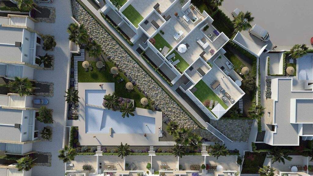 Entdecken Sie diese exklusive Wohnanlage in der prestigeträchtigen Anlage La Finca Golf in Algorfa. Die Anlage bietet eine einmalige Gelegenheit, ein Zuhause im Herzen der Costa Blanca Süd zu genießen, umgeben von weitläufigen Grünflächen, einem spektakulären Gemeinschaftspool und allen Annehmlichkeiten einer geschlossenen Wohnanlage.