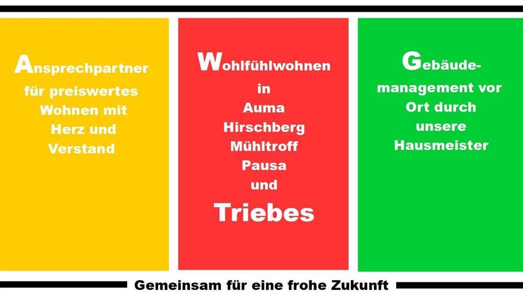 Infrastruktur und Gewerbegebiete sind gut entwickelt, so dass sich klein- und mittelständische Betriebe ansiedeln konnten. Triebes hat ein ausgebautes Schulwesen (Grund- und Regelschule), zwei Kindertagesstätten und eine Stadtbibliothek. Neben Geschäften, Ärzten, Apotheke finden Sie ebenso kleine Restaurants, Pensionen, Hotel, sowie eine Tankstelle.
