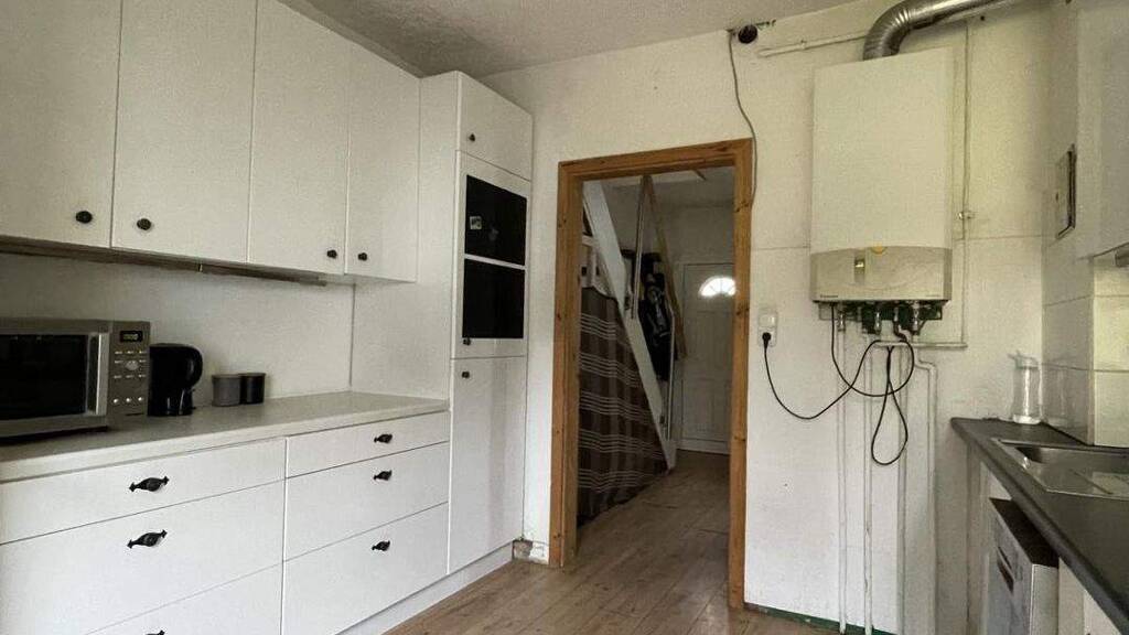 Angeboten wird ein Reihenmittelhaus mit Erweiterungspotenzial aus dem Jahr 1962 und bietet auf einem 554m² großen Grundstück viel Potenzial für Sanierungs- und Gestaltungsmöglichkeiten. Das Haus verfügt über eine Wohnfläche von ca.78m² mit Ausbaupotenzial auf ca. 110m². Im Erdgeschoss befindet sich ein großzügiger Wohn- und Essbereich mit direktem Zugang zum Garten. Hier kann man in Zukunft gemütliche Stunden mit der Familie oder Freunden verbringen und den Blick auf die grüne Umgebung genießen. Eine Küche runden das Angebot im Erdgeschoss ab.