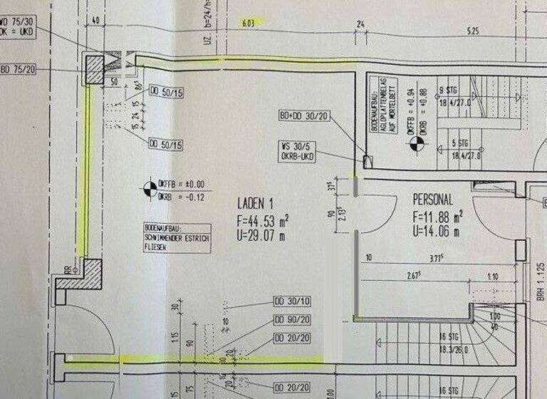 Das Ladengeschäft hat eine Gesamtnutzfläche von ca. 79 m² im Erd- und Untergeschoss eines im Jahr 1999 erbauten Geschäftshauses. Das Schaufenster hat eine Breite ca. 4,80 m. Zur Gewerbeeinheit gehört ein eigener Stellplatz im Hof der Gebäudeeinheit.