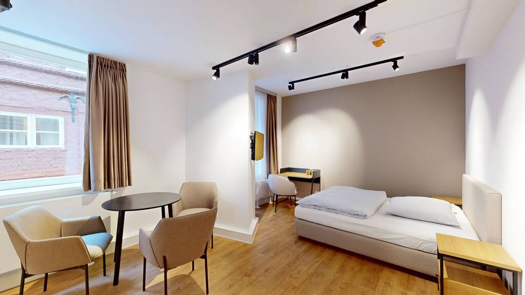Restaurants, Cafes, Lebensmittelläden, Drogerien und Bekleidungsgeschäfte sind durch die zentrale Innenstadtlage direkt vor der Haustür.