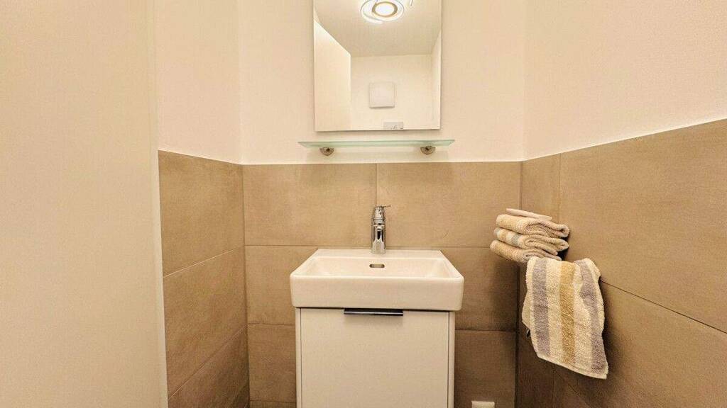 Zwei helle Schlafzimmer bieten vielseitige Nutzungsmöglichkeiten - ideal als Schlaf-, Arbeits- oder Gästezimmer. Das moderne Badezimmer wird durch ein separates Gäste-WC ergänzt und sorgt für zusätzlichen Komfort.