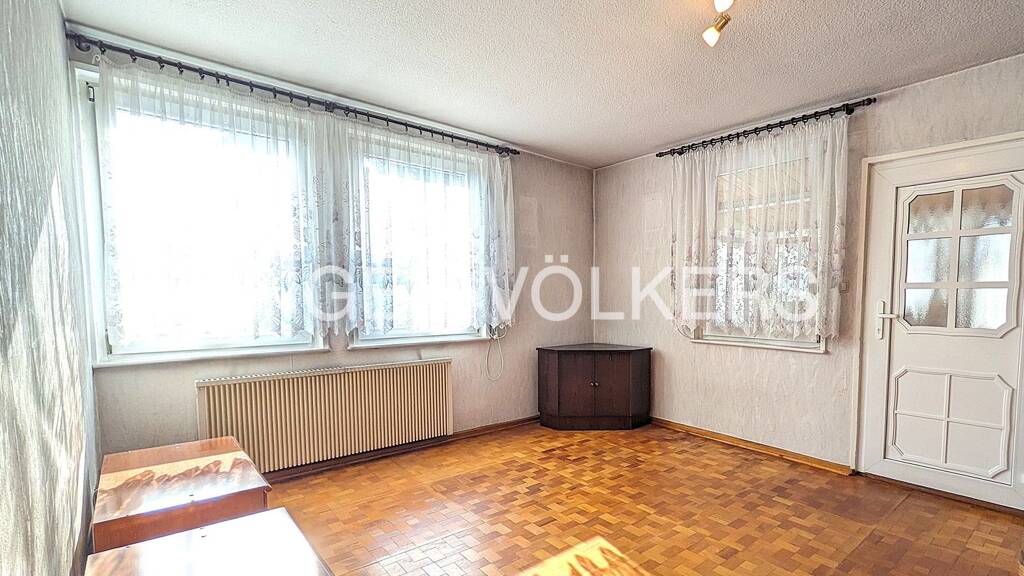 Dieses sanierungsbedürftige Einfamilienhaus aus dem Baujahr 1970 stellt eine solide Grundstruktur und viel Raum für individuelle Gestaltung dar. Das Haus verfügt über eine Wohnebene mit einer großen Küche, die ausreichend Platz zum Kochen und Backen bietet. Das Badezimmer vereint Funktionalität und Komfort. Im großzügigen Wohnzimmer sorgt viel Tageslicht für eine angenehme Atmosphäre. Das geräumige Schlafzimmer sowie zwei weitere Zimmer eignen sich ideal als Kinder- oder Arbeitszimmer. Die einladende Veranda lädt zum Verweilen und Plaudern ein. Der große Keller bietet ausreichend Stauraum für Ihre Bedürfnisse. Zusätzlich stehen zwei Garagen und ein Nebengelass zur Verfügung, die vielfältige Nutzungsmöglichkeiten bieten. Das großzügige Grundstück bietet viel Platz zum Gärtnern, Selbstverwirklichen und für weitere kreative Projekte. Um den Charme und das Potenzial voll auszuschöpfen, sind weitere Investitionen notwendig.