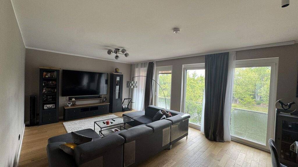 Diese exklusive 3-Zimmer-Wohnung vereint modernes Design, hochwertige Materialien und durchdachte Funktionalität auf ca. 120 m² Wohnfläche. In einem ruhigen, gepflegten Wohnhaus gelegen, bietet sie architektonische Klarheit und höchsten Wohnkomfort - unterstrichen durch eine integrierte Smart-Home-Technologie. Bereits beim Betreten eröffnet sich der großzügige Wohn- und Essbereich mit offen gestalteter, luxuriöser Einbauküche in stilvoller Ausführung. Ausgestattet mit modernsten Geräten, edlen Granitoberflächen, einem integrierten Quooker für kochend heißes Wasser auf Knopfdruck sowie einer hochwertigen Designarmatur, wird dieser Bereich zum eleganten Mittelpunkt des Zuhauses - perfekt für Genuss und Geselligkeit. Die lichtdurchfluteten Räume sind mit hochwertigem Echtholzparkett ausgestattet und schaffen eine warme, zeitlose Atmosphäre. Zwei Balkone erweitern den Wohnraum ins Freie: Der Südbalkon bietet ganztägige Sonne und lädt zum Verweilen ein, während der Nordbalkon an warmen Tagen einen angenehm kühlen Rückzugsort schafft. Die beiden exklusiv ausgestatteten Badezimmer überzeugen mit vollflächiger Verfliesung in edler Marmoroptik, stilvollen schwarzen Armaturen, einer bodengleichen Regendusche, einer integrierten Hygienedusche sowie einer hochwertigen Badewanne im zweiten Bad - ein privater Wellnessbereich für jeden Tag. Ob als anspruchsvolles Zuhause für Paare oder als stilvoller Lebensmittelpunkt für eine kleine Familie - diese Wohnung begeistert mit einem durchdachten Grundriss, exzellenten Materialien und einem Ambiente, das Ruhe, Eleganz und zeitgemäßen Wohnkomfort harmonisch vereint.