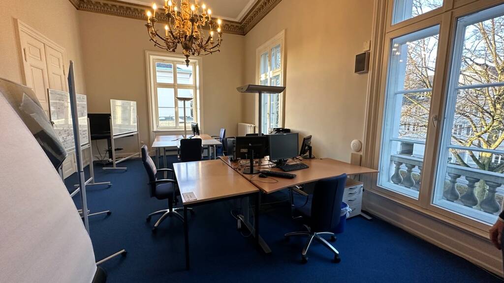 Das denkmalgeschützte Gebäude ist Teil des historischen Straßenzuges mit überwiegend prachtvollen Gebäudebeständen aus dem 19. Jahrhundert und zählt zu den begehrtesten Adressen in Hamburg. Von hier aus eröffnet sich ein phantastischer Blick auf den Hafen, den sowie die imposante Elbe. Der geschichtliche Charakter des Hauses verleiht den Räumlichkeiten eine ganz besondere Atmosphäre und macht sie zu etwas Einmaligem. Historische Architekturdetails verbinden sich hier mit einer repräsentativen Lage und schaffen ein exklusives Arbeitsumfeld. Über den einladenden Empfangsbereich im Erdgeschoss gelangt man in die Büroräume, die sich über drei Etagen erstrecken. Im Erdgeschoss stehen zwei großzügige Büros sowie ein Einzelbüro zur Verfügung. Angrenzend erreicht man über eine Galerie die Bürofläche im Zwischengeschoss. Sämtliche Büroräume sind zur Elbe ausgerichtet und bieten einen beeindruckenden Ausblick, der inspirierendes Arbeiten in außergewöhnlichem Ambiente garantiert.