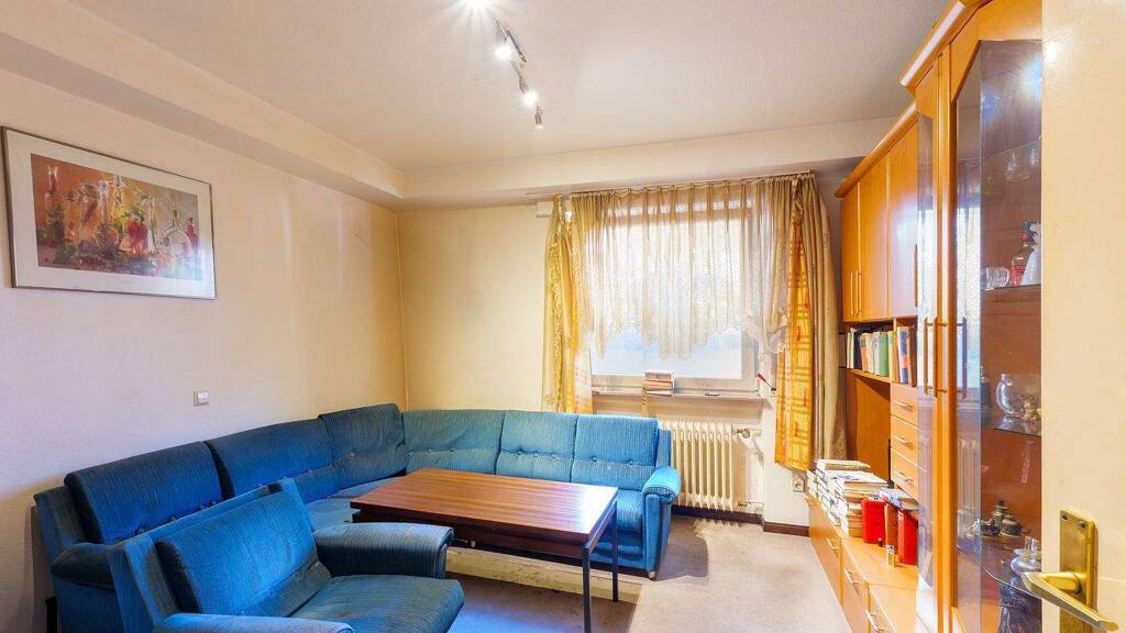 Den Abschluss bildet das großzügige Wohnzimmer, das als Mittelpunkt der Wohnung fungiert. Der gut geschnittene Raum bietet ausreichend Fläche für eine Wohnlandschaft sowie einen Essbereich. Die Fenster sorgen für eine freundliche Belichtung und schaffen eine helle, einladende Atmosphäre.
