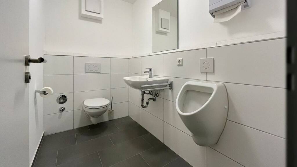 - Ca. 129 m² Werkstatt oder Lager - Ca. 27 m² Büro - Ca. 11 m² WCs + Flur - Vielfältige Nutzungsmöglichkeiten - Befahrbares Untergeschoss mit Sektionaltor - Robuster Granitboden im Büro - Moderne WCs - 5 Pkw-Stellpätze