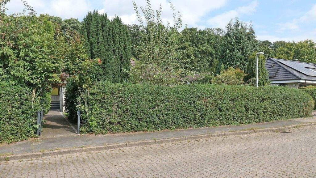 Die Lage des Objektes und die Umgebung sind ein über Jahrzehnte gewachsenes Wohnviertel. Das Haus steht auf einem Eckgrundstück und ist bis auf die Zufahrt zur Garage und Carport durch Hecken eingefriedet. Von der Straße führt durch ein Gartentor eine gepflasterte Zuwegung zum Hauseingang.