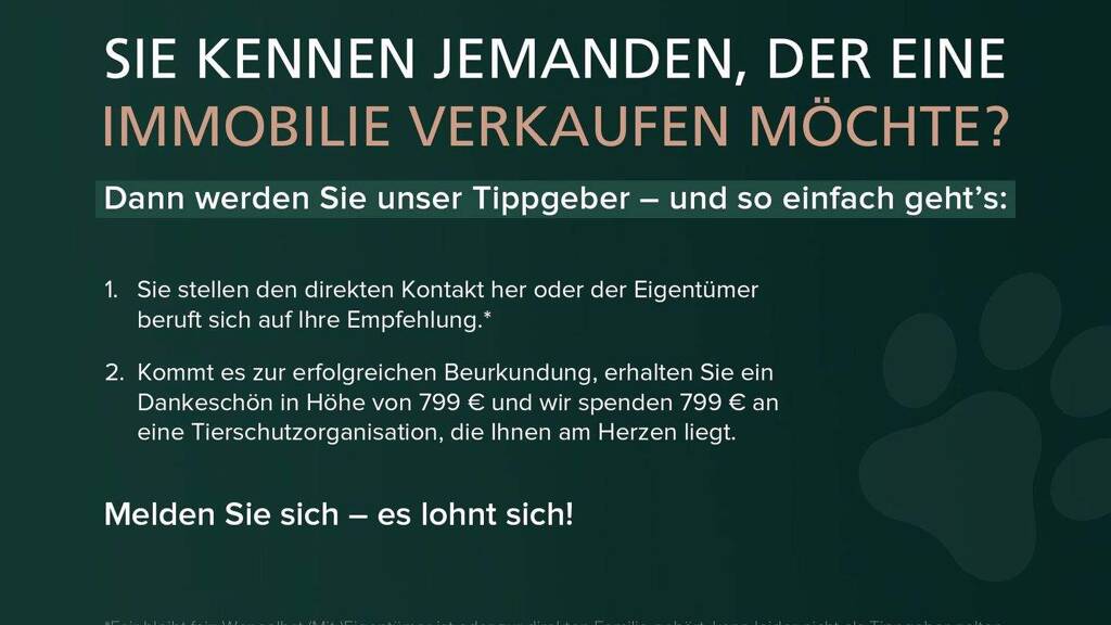 Um Verzögerungen bei der Zusendung des Exposés zu vermeiden, geben Sie bei Ihrer Anfrage bitte Ihre vollständige Anschrift, Telefonnummer und E-Mail-Adresse an.
