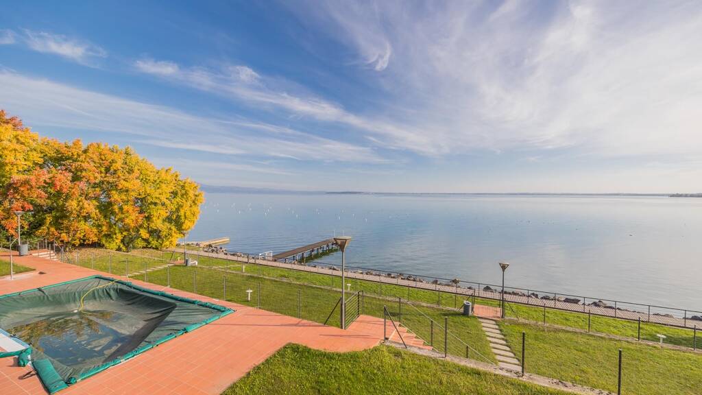 Die Wohnung bietet Ihnen nicht nur ein gemütliches Zuhause, sondern ist auch teils möbliert, was den Umzug und die Anpassung an Ihren neuen Lebensstil unglaublich einfach macht. Die Lage dieser Gartenwohnung könnte nicht besser sein. Umgeben von einer reichhaltigen Ausstattung, befindet sie sich in einer traumhaften Residence, die sowohl Gästen als auch Bewohnern eine breite Auswahl an Erholungsstätten bietet. Dazu gehören zwei hervorragend ausgestattete Tennisplätze, die sich perfekt zum Training und zur Freizeitgestaltung eignen. Drei Schwimmbäder mit unterschiedlichen Größen und Tiefen bieten sowohl versierten Schwimmern als auch Sonnenliebhabern ein einmaliges Badeerlebnis. Eines der faszinierendsten Merkmale dieser Wohnanlage ist jedoch zweifellos die riesige Parkanlage, die direkt an den See grenzt. Egal ob beim morgendlichen Spaziergang oder beim Picknick, die atemberaubende Schönheit und Ruhe, die dieser Park ausstrahlt, lässt jeden Moment zu etwas ganz Besonderem werden. Eine solche Nähe zur Natur, verbunden mit der Möglichkeit, direkten Zugang zum See zu haben, ist ein seltenes und wertvolles Gut. Der Seeblick bis Sirmione, der sich von der Anlage aus bietet, ist wie ein ständiger Begleiter, der die Herzen von Naturliebhabern und Ästheten höher schlagen lässt. Diese einmalige Aussicht bietet ein unvergleichliches Maß an Vitalität und Freude, das Ihre Lebensqualität um ein Vielfaches steigert.