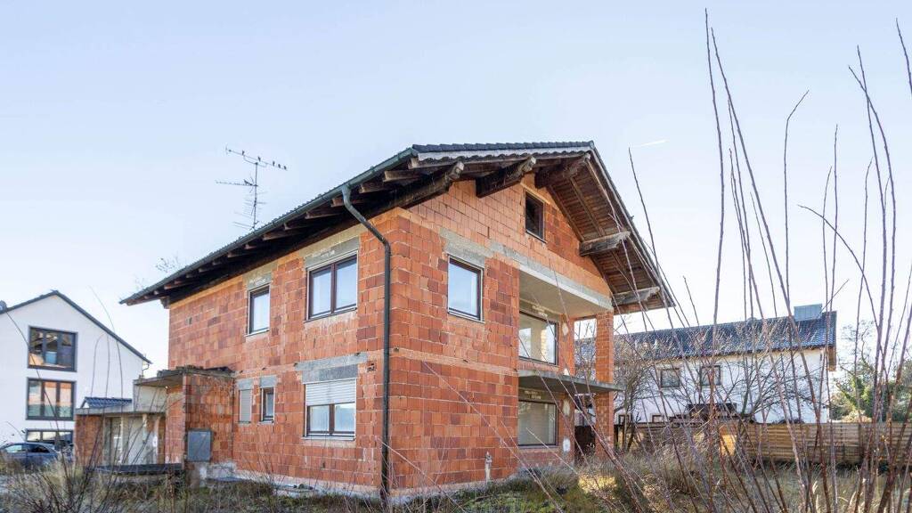 Dieses freistehende Einfamilienhaus aus dem Jahr 1977 befindet sich im Rohbauzustand und bietet eine ausgezeichnete Grundlage für individuellen Ausbau und kreative Gestaltungsmöglichkeiten. Das großzügige Grundstück mit Süd-Westausrichtung sowie die vorhandene Doppelgarage runden das Gesamtangebot ab. Im Erdgeschoss erwartet Sie eine geräumige Wohnküche sowie ein großer, lichtdurchfluteter Wohnbereich mit direktem Zugang zur Süd-West-Terrasse. Außerdem stehen ein Schlafzimmer und ein teilweise fertiggestelltes Badezimmer mit Badewanne zur Verfügung. Im Obergeschoss befinden sich drei weitere Schlafzimmer - eines davon mit gemütlichem Ofen - sowie ein helles Badezimmer mit Fenster und ein Balkon mit schönem Ausblick. Das Haus ist voll unterkellert und bietet viel Potenzial für zusätzlichen Wohn- und Nutzraum. Zwei Hobbyräume mit Abböschung sorgen für natürliches Tageslicht, ergänzt durch zwei weitere Kellerräume. Der Kellerbereich ist ebenso wie Teile des Erdgeschosses noch nicht fertig ausgebaut und bietet daher eine ideale Basis für individuelle Ausbauwünsche. Das Gebäude wird derzeit über eine Ölheizung vorbereitet, die jedoch noch nicht angeschlossen ist. Teilweise sind bereits Parkettböden vorhanden. Insgesamt handelt es sich um einen Rohbau, der sich hervorragend zur Fertigstellung nach eigenen Vorstellungen eignet - eine seltene Gelegenheit für alle, die ein Fundament mit viel Gestaltungsspielraum suchen.