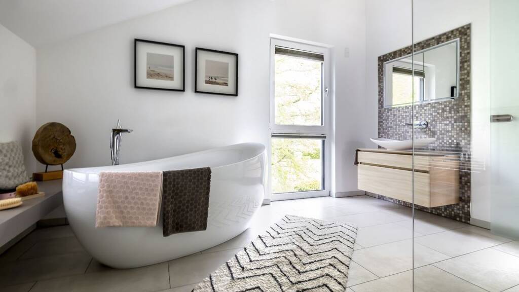 Ausgezeichnet mit dem German Design Award, steht das "Musterhaus Bad Vilbel" für inspirierende Architektur, optimale Grundstücksnutzung und ein Höchstmaß an Energieeffizienz. An das großzügige Hauptgebäude mit Satteldach schließt sich im Erdgeschoss der kubistische Anbau an und bietet vielfältige Nutzungsmöglichkeiten. Durch die Teilung der Dachflächen entsteht das Herzstück des Hauses: das Atrium, in Anlehnung an die römische Architektur. Bodentiefe Fenster und Schiebetüren verbinden Drinnen mit Draußen und sorgen für reichlich Lichteinfall. Hier trifft man sich!