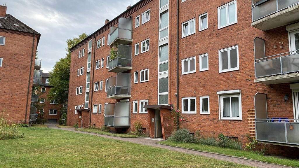 2-Zimmer-Wohnung im Erdgeschoss mit Einbauküche, Duschbad mit Fenster und Balkon in Barmbek