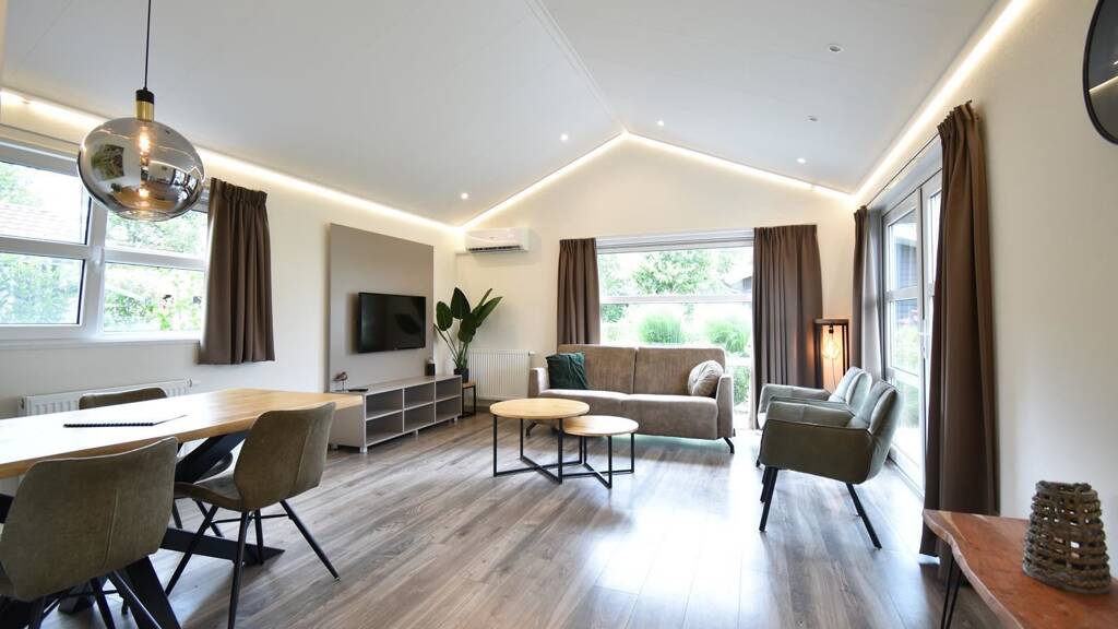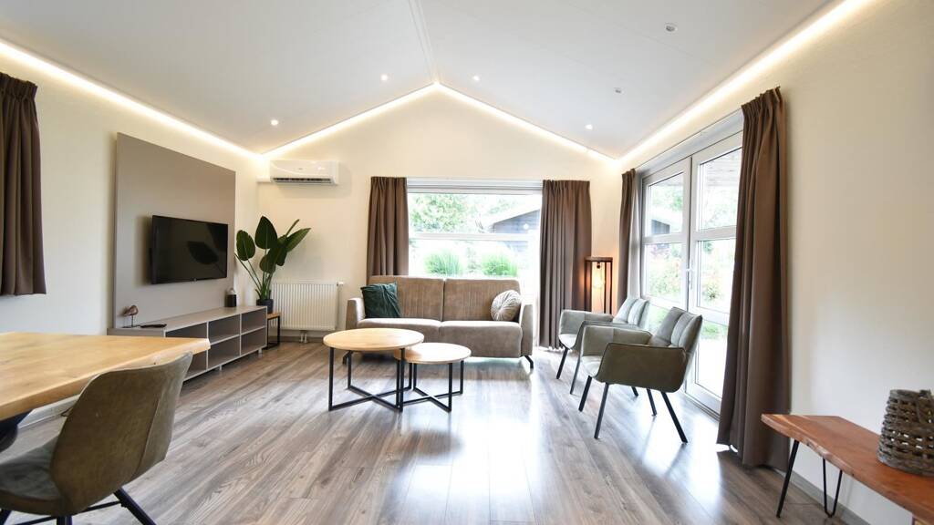 In dem schön angelegten Park Résidence Lichtenvoorde liegt dieses schöne Haus. Komplett ausgestattet mit Laminatboden und Split-Klimaanlage: Eingang, Flur, Heizungsraum, 2 Schlafzimmer, Wohnzimmer mit offener Küche und Flügeltüren zur Terrasse. Moderne Küchenzeile mit Einbaugeräten, darunter ein Kühlschrank, Geschirrspüler, Gasherd, Dunstabzugshaube und Kombi-Mikrowelle. Modernes Badezimmer mit geräumiger begehbarer Dusche, Waschbecken und Design-Heizkörper. Separater Toilettenraum mit Hängeschrank und Handwaschbecken. Ausgestattet mit Wifi. Gepflegter Garten mit Außensauna, Terrasse mit Gartenmöbeln und Sonnenschirm. Autoabstellplatz auf dem Privatgrundstück.