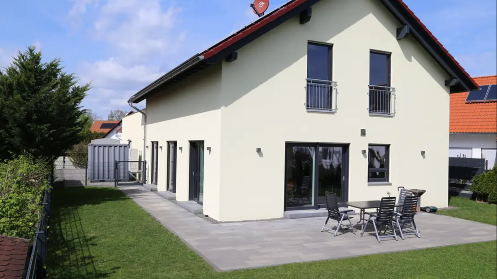 Auf der Rückseite des Hauses befindet sich eine einladende Terrasse, die zum Entspannen und Verweilen einlädt. Hier können Sie gemütliche Stunden im Freien genießen, sei es beim Frühstück im Freien oder beim Grillen mit Freunden und Familie.