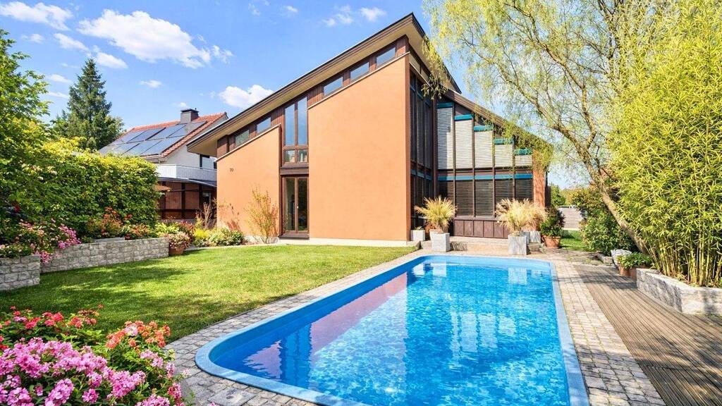 Helles Architektenhaus in ruhiger und grüner Bestlage von Dresden-Zschieren mit folgender Ausstattung: * schöner Garten mit Pool * große Terrasse vor dem Haus Richtung Pool * eine weitere sonnengeschützte Terrasse hinter dem Haus * große Garage am Haus * großes und sehr helles Wohnzimmer * teilweise Fußbodenheizung * ausgebautes Souterrain/Gartengeschoss * zwei Bäder plus Gäste-WC * elektrische Jalousien an fast allen Fenstern * Einbauküche vorhanden * sehr hochwertige Fußböden * Heizung neuwertige Brennwert-Therme Weitere Informationen und Grundrisse und Besichtigungen gerne auf Anfrage. Dieses und weitere Angebote finden Sie unter www.dresdden.de