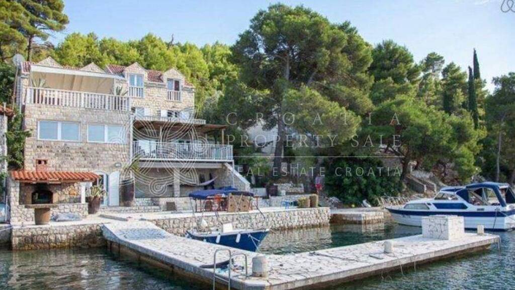 Croatia Dubrovnik Ston Seafront Villa for sale with a Pier offers a private pier and is situated in a deep bay close to a yacht marina. The property is owned by a company and was originally built in the 1990s, with extensive renovations recently completed. Many of the villa's furnishings are imported from Bali, adding an exotic touch to its luxurious ambiance.The villa is accessibleby car, with the road leading to within 200 meters of the property. It spans three floors and boasts a total living area of 370 sq.m., with an additional 165 sq.m. of terraces. The ground floor features a spacious kitchen, a toilet, and a storage room. The first floor includes a large open-plan living room with a kitchen and dining area, a toilet, a storage room, and one large bedroom with an en-suite bathroom. The second floor offers three large bedrooms, two bathrooms, and a 100 sq.m. terrace, while the third floor consists of two large bedrooms and a master bathroom measuring 18 sq.m.The property has private mooring for two large boats, with additional space available for other boats to anchor in front, provided they do not occupy the private mooring. An Energy Consumption Certificate is currently being processed.Price for Croatia Dubrovnik Ston Seafront Villa for sale with a Pier is 1 200 000 EUR.