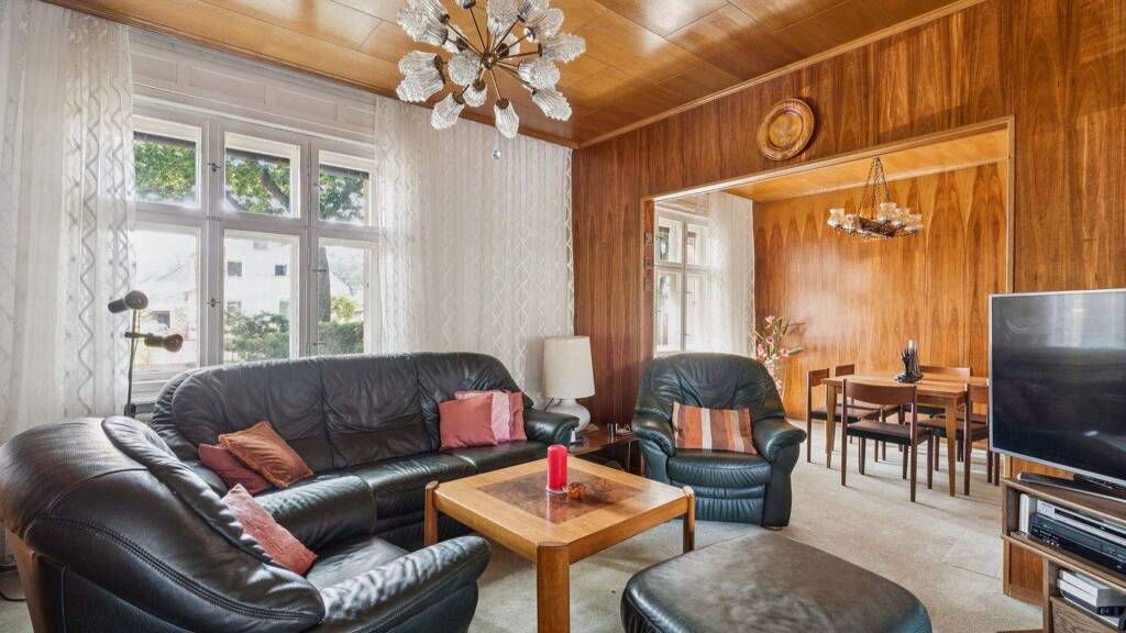 Dieses gut erhaltene Einfamilienhaus aus dem Jahr 1932 überzeugt durch seinen einzigartigen Charme und zahlreiche Originaldetails. Besonders hervorzuheben sind das stilprägende Tonnendach und die klassischen Holzkastenfenster, die dem Haus einen unverwechselbaren Charakter verleihen. Im Erdgeschoss erwartet Sie ein großzügiger Wohnbereich mit zwei miteinander verbundenen Zimmern, die bei Bedarf auch wieder getrennt genutzt werden können - ideal als Wohn- und Esszimmer oder für flexible Nutzungskonzepte. Eine separate Küche sowie ein Badezimmer runden das Raumangebot auf dieser Etage ab. Das Obergeschoss bietet drei weitere Zimmer, ein zweites Badezimmer und Zugang zu einem gemeinschaftlich nutzbaren Balkon - perfekt für Familienmitglieder oder Gäste. Der Dachboden eignet sich hervorragend als Spielboden für Kinder oder als zusätzlicher Stauraum. Im Keller stehen neben dem Heizungsraum weitere Nutzflächen zur Verfügung - ideal für eine kleine Werkstatt und Vorratslager. Im Carport, das sich rechts neben dem Haus befindet ist bereits eine Wallbox installiert. Ein besonderes Highlight ist der großzügige Garten, der viel Platz zum Spielen, Gärtnern oder Entspannen bietet. Ob Kinderparadies oder Grillabende mit Freunden - hier ist alles möglich.