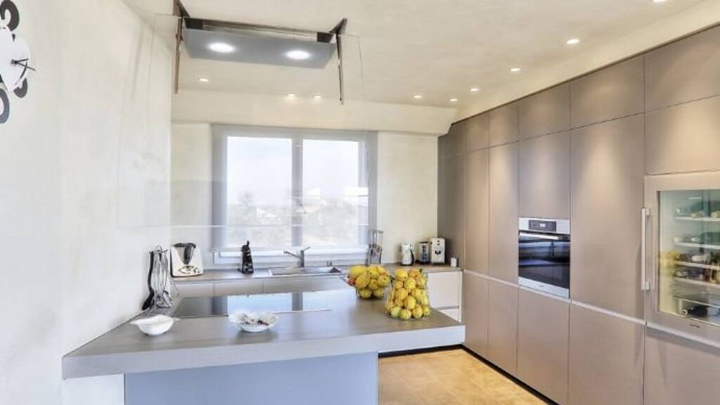 Das Grundstück erstreckt sich über drei Ebenen mit einer Gesamtfläche von ca. 400 Quadratmetern.Im Erdgeschoss gibt es einen Eingang, der Zugang zum offenen Wohnbereich gibt, wo das Wohnzimmer mit einem schönen Kamin und einem privilegierten Blick auf den Garten und den Swimmingpool ausgestattet ist, während die Küche fast nicht vorhanden zu sein scheint, da alle Geräte der neuesten Generation so konzipiert sind, dass sie verschwinden, sobald man sie nicht mehr benutzt. Wir finden auch ein weiteres Wohnzimmer mit Kochnische, zwei Schlafzimmer und zwei Bäder.