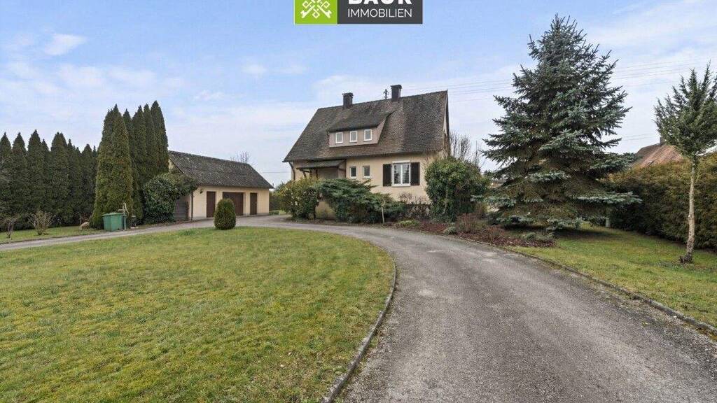 Das Einfamilienhaus wurde im Jahr 1958 errichtet und bietet auf ca. 135 m² Wohnfläche insgesamt fünf Zimmer. Die Öl-Zentralheizung stammt aus dem Jahr 1998, die Fenster wurden 1995 erneuert, eine teilweise Fassadendämmung erfolgte 2005. Besonders hervorzuheben ist die umfassende Sanierung des Badezimmers im Erdgeschoss inklusive der Wasserleitungen zwischen Bad und Heizraum im Jahr 2023. Ergänzt wird das Wohnhaus durch ein großzügiges Nebengebäude mit Garage, Lagerraum und Werkstatt. Das Grundstück umfasst über 4.100 m² und bietet reichlich Platz für Garten, Freizeit und Erholung. Die Immobilie steht leer und ist sofort verfügbar.
