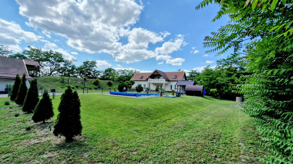 Das Objekt, das als Gastronomiebetrieb fungiert, verfügt über ein Kellergebäude mit Weinprobebereich, vier Appartements, einen 300 m2 großen Wellnessbereich im Freien, eine Sauna, ein Schwimmbad, ein Jacuzzi und ein Parkplatz. Wasser, Strom, Industriestrom, Stadtwerke, häusliche Abwasserversorgung, Pflasterung, Straßenbeleuchtung, teilweise eingezäunt, in einem Gebiet, das über eine asphaltierte Straße und einen 600 m langen Feldweg erreichbar ist.