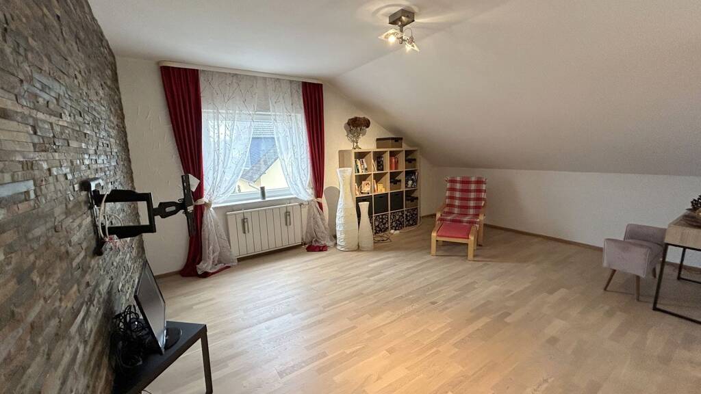 Im ausgebauten Spitzboden erwartet Sie ein großzügiges Studiozimmer, das sich ideal als kombinierter Wohn- und Schlafbereich, Arbeitszimmer oder Gästebereich nutzen lässt. Eine Split-Klimaanlage mit Fernbedienung sowie die drei Dachfenster des Studio, allesamt mit Außenrollläden, sorgt hier auch in den Sommermonaten für ein angenehmes Raumklima. Ergänzt wird diese Ebene durch ein weiteres Tageslicht-Duschbad aus dem Jahr 2004.