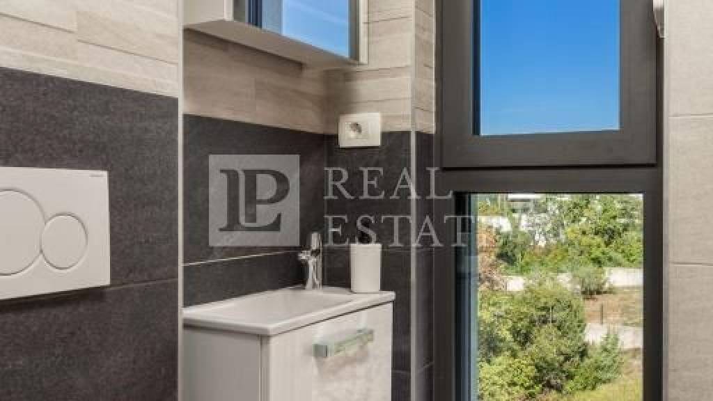 Die Hauptwohneinheit ist naturgemäß eine zweigeschossige Wohnung. Im Erdgeschoss der Einheit befindet sich ein sonniger offener Raum, der ein gemütliches Wohnzimmer mit Küche und Esszimmer bildet. Von dem genannten Bereich aus erreichen Sie eine schöne Terrasse mit einem 25 m2 großen Infinity-Pool und einer Liegewiese. Die Terrasse mit dem Pool, von der aus man einen freien Blick auf das blaue Meer hat, ist das Besondere an diesem wunderschönen Anwesen. Eine Innentreppe führt in den ersten Stock, wo sich vier Schlafzimmer, zwei Badezimmer, eine Waschküche und ein Trockenraum befinden.