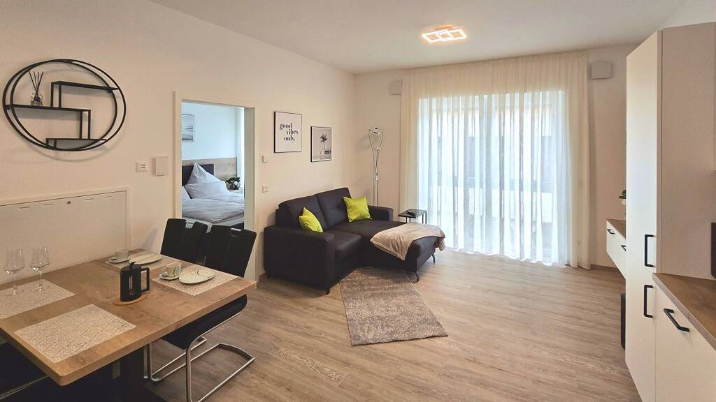 Das neu errichtete Apartmenthaus in der Innenstadt bietet optimale Nähe zu allen wichtigen Geschäften des täglichen Bedarfs. Lebensmittelmarkt, Restaurants, Apotheke und Frisör finden Sie quasi vor der Haustüre. Dank guter Verkehrsanbindung und wirtschaftlicher Infrastruktur in der Region lässt sich alles gut erreichen oder ohne lange Fahrtwege beschaffen. Am nahen Flussufer lässt sich Sport treiben und entspannen.