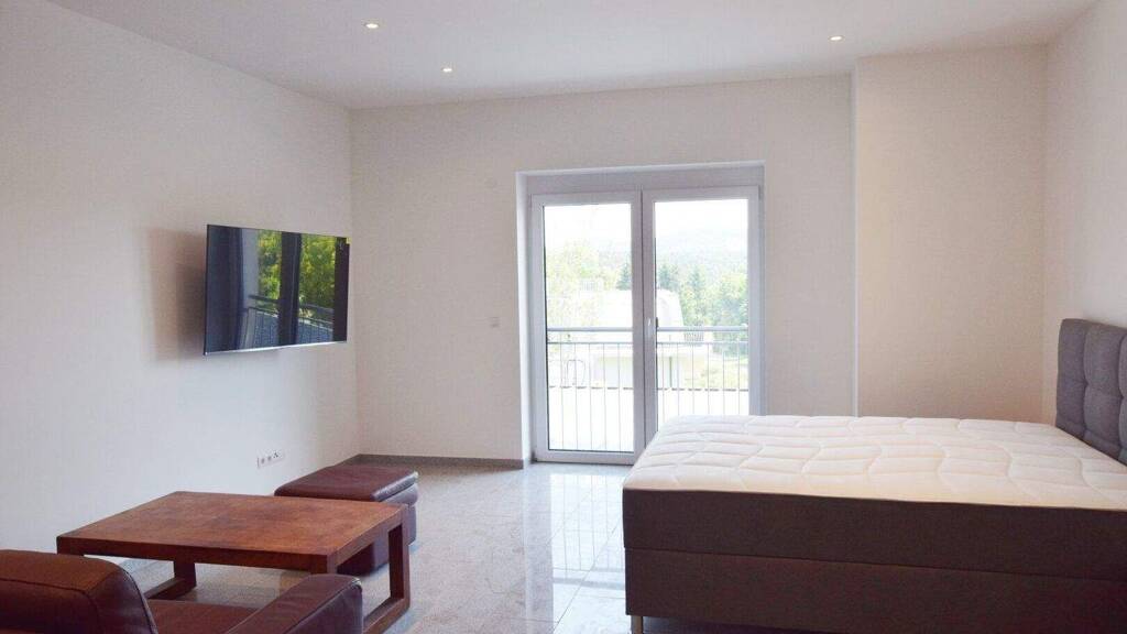* voll möbliert (nagelneues Doppelbett, Bettwäsche, TV, Sitzgarnitur, Schreibtisch, Küche)