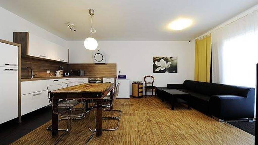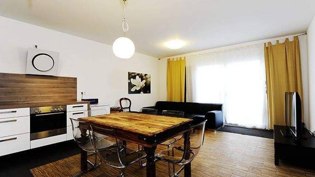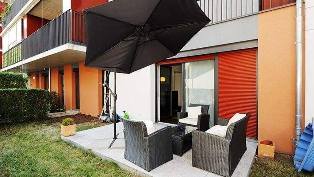 English apartment description The cosy apartment with approx. 89 m² is located on the ground floor of an apartment building that was built in 2009. It has a 30 m² kitchen-cum-living-room with access to a spacious terrace. In addition, the apartment has a daylight bath and an additional guest toilet. It offers in 3 bedrooms sleeping places for up to 6 persons (2 double and 2 single beds). In addition to the usual kitchen appliances, it has a washing machine and a dryer. In addition, there is a high-speed Internet connection and a car parking space in the underground garage is also available. Location Public transport, shopping and restaurants are within walking distance. The city centre is about 12 minutes walk away. Within 2 minutes walking distance you are at the main station, but despite the central location you can enjoy a pleasant silence in your apartment.