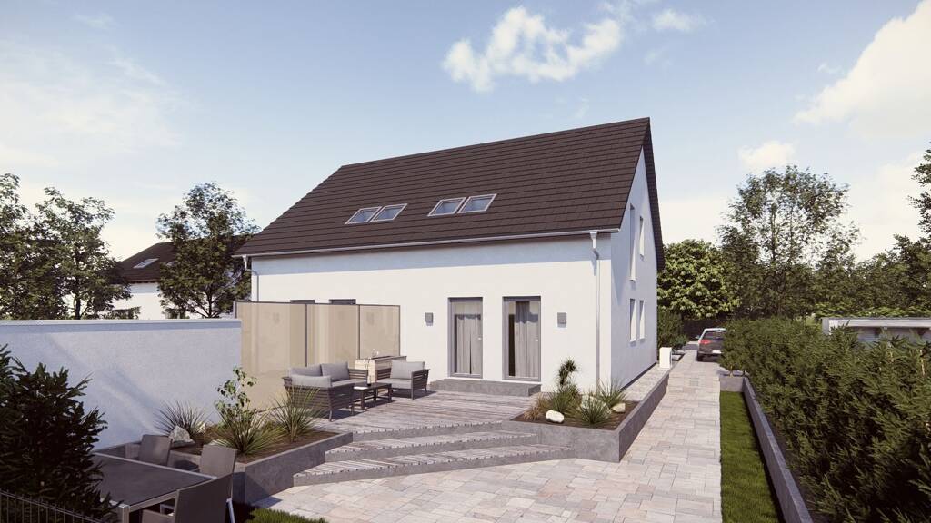 Preis beinhaltet: - Grundstück - Bezugsfertiges Doppelhaus - auf Bodenplatte (Keller gegen Mehrpreis möglich) - Hocheffiziente Heizanlage - Luft-Wasser-Wärmepumpe - Fußbodenheizung - Photovoltaikanlage inkl. Batteriespeicher - 3-fach Verglasung - elektrische Rollläden mit Aluminiumpanzer - und vieles mehr