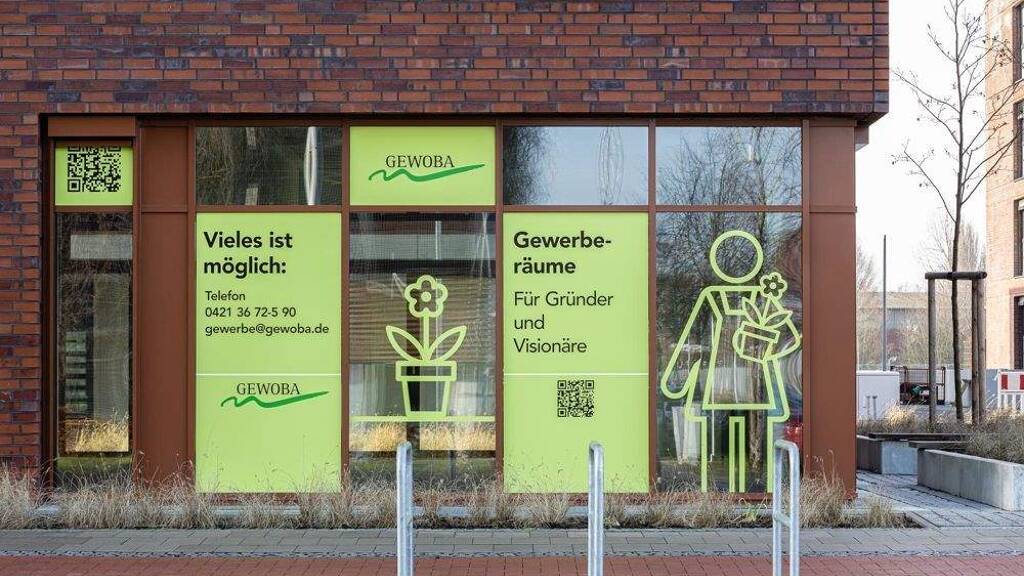 Oben Wohnen, unten Einkaufen! Das EuropaQuartier bietet Geschäftsleuten und Gewerbetreibenden hier gute Voraussetzungen für einen lebendigen Gewerbemix und wird zum Mittelpunkt der Überseestadt ernannt.