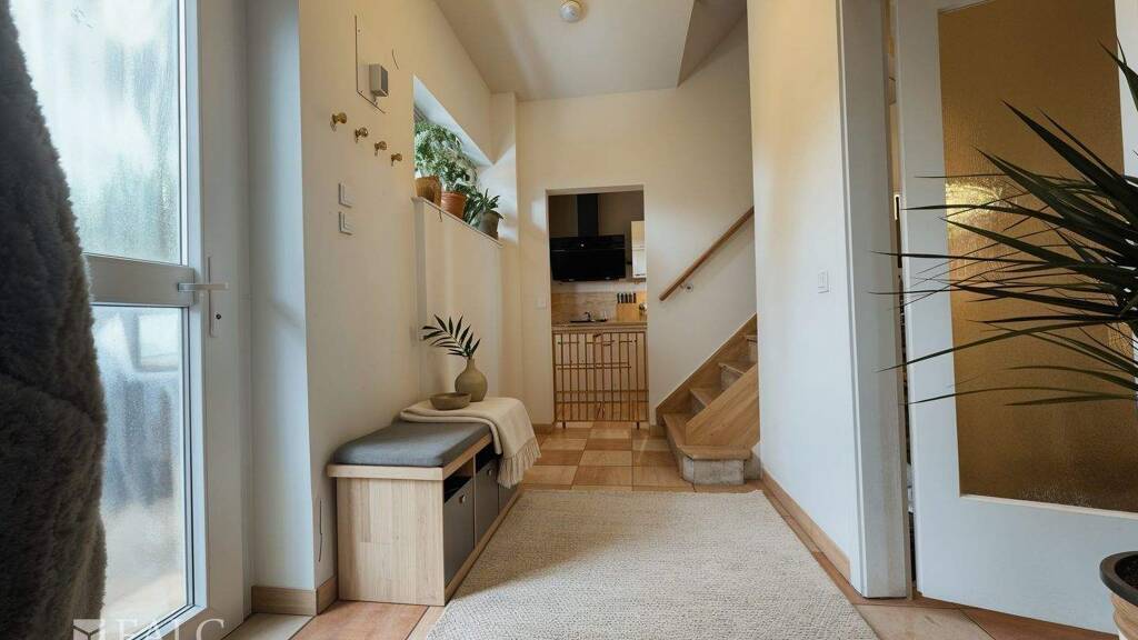 Im Obergeschoss erwartet Sie ein großes Schlafzimmer, ein weiteres Zimmer, das sich ideal als Kinderzimmer oder Büro nutzen lässt, sowie ein kleineres Zimmer, das aktuell als Ankleide dient. Das Tageslichtbad ist großzügig gestaltet und bietet sowohl eine Dusche als auch eine Badewanne - ideal für entspannte Wohlfühlmomente.