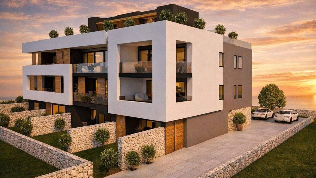 Der offen gestaltete Wohn- und Küchenbereich mit 39,06 m² bildet den zentralen Treffpunkt der Wohnung und öffnet sich zur großzügigen Loggia. Große Fensterflächen sorgen für eine angenehme Wohnatmosphäre und eröffnen den Blick auf die Adria sowie die umliegende Berglandschaft - ideal für entspannte Momente oder gesellige Abende.