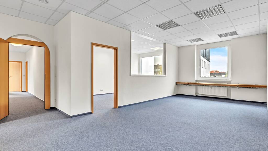 Wir bieten Ihnen eine attraktive Büroimmobilie in zentraler Lage von Eggenstein-Leopoldshafen mit einer Fläche von ca. 190,00 m² im 1. Obergeschoss eines gepflegten Gebäudes. Die Bürofläche wird vor Ihrem Einzug umfassend renoviert und in einem modernen, einladenden Zustand übergeben. Der Grundriss ist durchdacht und flexibel nutzbar, ideal für Unternehmen unterschiedlicher Branchen. Beim Betreten der Bürofläche gelangen Sie in einen offenen Empfangsbereich, der sich perfekt für die Begrüßung von Kunden und Geschäftspartnern eignet. Es stehen Ihnen vier helle, gut geschnittene Büroräume zur Verfügung, die ausreichend Platz für verschiedene Nutzungen bieten - ob als Einzelbüros, Besprechungsräume oder Arbeitsbereiche für Teams.