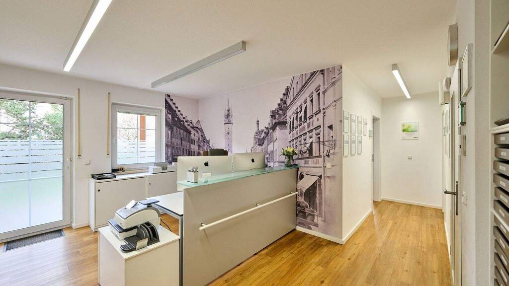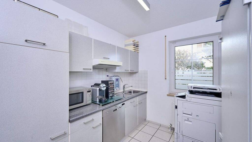 Die Gewerbeeinheit weist modernste Ausstattung wie hochwertigen Vinylboden, LED-Deckenbeleuchtung, Deckensegel fĂĽr beste Raumakustik, komplette LAN-Verkabelung, EinbaukĂĽche, Raum fĂĽr Server-/Archiv im Keller auf.