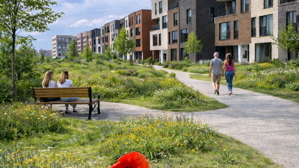 Auch die Nahversorgung ist sichergestellt: Geschäfte für den täglichen Bedarf, mehrere Grund- und weiterführende Schulen, Kindertagesstätten sowie Freizeit- und Sportvereine befinden sich direkten im Quartier.