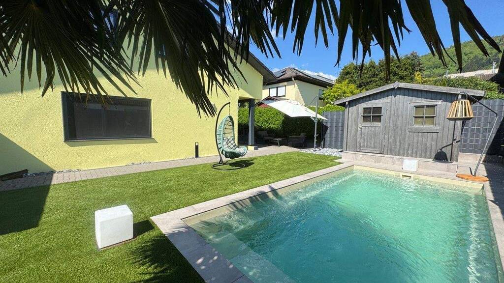 Diese hochwertig modernisierte Doppelhaushäfte garantiert perfektes Wohnen mit mediterranen Flair. Der großzügige Wohnbereich mit Kamin wird Sie begeistern, genauso wie das schicke Studio mit Sauna im Untergeschoss.