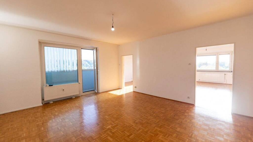 Dank Lift, oder zu Fuß über das Stiegenhaus, gelangen Sie in die Wohnung mit 180 Grad Ausblick, welche sich im 6. Stockwerk des Gebäudes befindet. Die 4 geräumigen Zimmer bieten viel Platz und sind praktisch aufgeteilt. Außerdem verfügt die Wohnung über eine Küche, ein Bad und WC. Ebenfalls inkludiert sind ein eigenes Kellerabteil und eine Parkkarte, mit der auf den Parkplätzen der Wohnanlage geparkt werden kann.