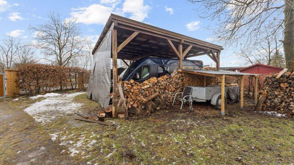 Für Fahrzeuge stehen Freiplätze, ein Doppelcarport sowie eine Garage zur Verfügung.