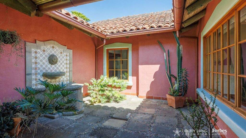 Santo Domingo Hacienda Estate Elegantes Anwesen von Ronald Zürcher in Santo Domingo, Zentraltal Costa Rica. Luxuriöses Haus mit spektakulären, gepflegten Gärten, neuem Bewässerungssystem, temperiertem Salzwasserpool, Gästehaus, Sicherheitssystem, Privatsphäre und klassischem Hacienda-Design. Diese bemerkenswerte einstöckige Residenz in Santo Domingo de Heredia ist eine seltene Gelegenheit, ein Markenhaus zu erwerben, das von Ronald Zurcher, einem der berühmtesten Architekten Costa Ricas, entworfen wurde. Bekannt für seine organischen Formen, seine Liebe zum Detail und die Beherrschung von Räumen, die Eleganz mit Funktionalität verbinden, repräsentiert Zürchers Werk einige der schönsten Ausdrucksformen der modernen Architektur, die Costa Rica zu bieten hat. Dieses 1996 fertiggestellte und von Constructora Ing. Dedi Heinrich erbaute Haus hat den zeitlosen Charme eines klassischen Anwesens im Hacienda-Stil, das durch die Raffinesse und Vision verstärkt wird, die Zürchers charakteristischen Ansatz ausmachen. Das Haus wurde im Jahr 2020 komplett umgebaut. Das Anwesen befindet sich in der vornehmen Nachbarschaft von Santo Tomás, einem Viertel, das seit langem als eine der klassischsten Wohngegenden von Heredia gilt, und bietet nicht nur architektonischen Stammbaum, sondern auch einen Lebensstil, der auf Komfort, Privatsphäre und Bequemlichkeit basiert. Santo Domingo wird für sein gemäßigtes Klima, seine grünen Straßen und seine erstklassigen Dienstleistungen bewundert, darunter ausgezeichnete internationale Schulen, Einkaufsmöglichkeiten, Restaurants und Gesundheitsversorgung. Seine zentrale Lage bietet einen schnellen Zugang zu San José und dem Flughafen, während gleichzeitig eine ruhige Wohnatmosphäre erhalten bleibt, die es zu einer der begehrtesten Adressen im Central Valley gemacht hat. Das Anwesen erstreckt sich über ein weitläufiges Grundstück von 6.647 m² (1,64 Acres) und erstreckt sich über gepflegte Gärten, die von alten Bäumen beschattet und von einem markanten Salzwasserpool verankert werden, der zum Herzstück des Lebens im Freien wird. Weite Rasenflächen bieten Platz für Freizeit und Zusammenkünfte, während Landschaftsflächen und Baumkronen die Residenz mit einem Gefühl zeitloser natürlicher Schönheit umrahmen. Das Gelände ist von einer 330 Meter langen Begrenzungsmauer mit automatischem Torzugang und vollständiger Perimeterbeleuchtung umgeben. Das Haupthaus erstreckt sich über 511 m² (5.500 sq ft) auf einer einzigen Ebene, ergänzt durch ein 100 m² (1.075 sq ft) großes Gästehaus. Zusammen schaffen sie eine Umgebung, die sowohl für das private Leben als auch für die Beherbergung von Familien oder Gästen ideal ist. Das Haus begrüßt Sie mit einer großzügigen Eingangshalle, die in integrierte Wohn- und Essbereiche führt, die so gestaltet sind, dass sie nahtlos mit der Natur übergehen. Ein zentraler Innenhof mit einem mexikanischen Brunnen bringt natürliches Licht und Ruhe in das Herz des Hauses, während sich eine große Terrasse - vollständig mit Glaspaneelen umzäunt - vom Wohnzimmer und der Master-Suite erstreckt und das ganze Jahr über eine Verbindung zu den Gärten bietet. Die Küche, die Speisekammer und das Wäschemodul sind einfach und funktional angeordnet und werden durch reichlich Stauraum im gesamten Gebäude unterstützt. Die Master-Suite verfügt über ein geräumiges Badezimmer und einen begehbaren Kleiderschrank, ergänzt durch zwei Kinderzimmer mit Gemeinschaftsbad, ein Gästezimmer mit eigenem Bad und ein zusätzliches Gästebadezimmer. Zur Unterkunft gehört auch ein Dienstmädchenzimmer mit eigenem Bad. Die Pension bietet einen privaten Rückzugsort mit einem zusätzlichen Schlafzimmer und Bad. Überdachte Parkplätze für drei Fahrzeuge und Platz für bis zu zehn weitere Fahrzeuge sorgen für Praktikabilität bei großen Versammlungen. Die Infrastruktur des Anwesens spiegelt eine sorgfältige Planung wider: ein unabhängiger Brunnen, ein Bewässerungssystem, das 90 % der Gärten abdeckt, ein Wasserfiltersystem, Wasserspeicher- und Drucksysteme, Perimeteralarm und Videoüberwachung mit Fernzugriff sowie eine vollständige WLAN-Abdeckung. Jedes Detail trägt zu einem Lebensstil bei, der von Leichtigkeit, Sicherheit und Zuverlässigkeit geprägt ist. Dieses Luxushaus ist mehr als eine Residenz - es ist ein Statement für architektonische Exzellenz und eine Gelegenheit, in einer der prestigeträchtigsten Enklaven Costa Ricas zu leben. Es kombiniert die Kunstfertigkeit von Ronald Zurcher, den Charme des von der Hacienda inspirierten Lebens und die anhaltende Anziehungskraft von Santo Domingo de Heredia. Um die Harmonie von Design und Landschaft voll und ganz zu genießen, laden wir Sie ein, eine private Besichtigung dieses angesehenen Anwesens zu arrangieren.