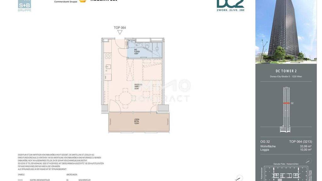 Dieses 1-Zimmer-Apartment im DC2 Tower ist ein Rückzugsort über der pulsierenden Metropole - mit einem Blick über Wien. Die westliche Ausrichtung schenkt der Wohnung ein warmes Nachmittags- und Abendlicht und macht jeden Sonnenuntergang zu einem privaten Schauspiel über den Dächern der Stadt.