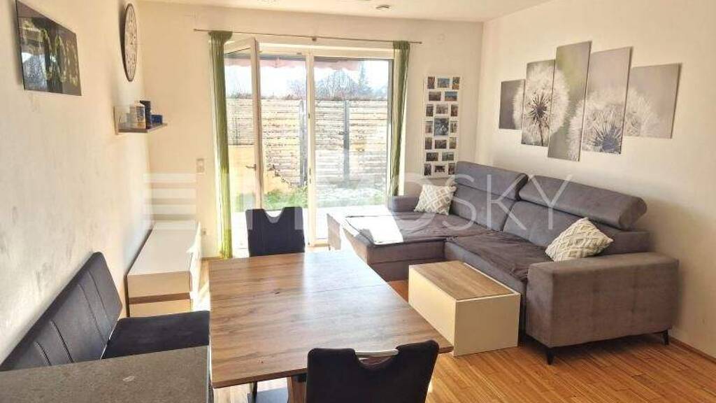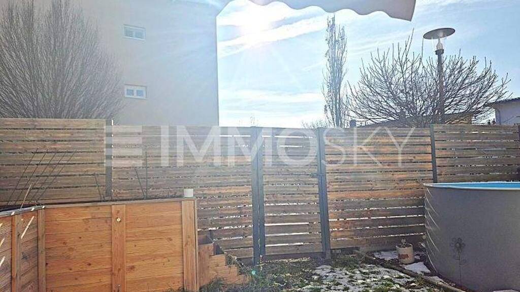 Diese hübsche und äußerst gepflegte Wohnung in einer ruhigen Wohnsiedlung besticht durch ihre tolle Raumaufteilung und geschmackvolle Einrichtung. Der Eingangsbereich bietet ausreichend Platz und wirkt optisch verhältnismäßig weit und offen. Von hier aus gelangen Sie in alle Bereiche des gemütlichen Zuhauses. Der Wohn- Essbereich, mit der optisch ansprechenden und gut geplanten Einbauküche, stellt das Herzstück dieser Wohnung dar und verströmt Behaglichkeit und Wohnlichkeit - nicht zuletzt wegen der Glasfront und dem Zugang zum gemütlichen Garten mit Aufstellpool und einem praktischen, hochwertigen Hochbeet - perfekt für schöne Stunden mit Freunden oder Familie. Das Schlafzimmer ist mit seinem Grundriss ebenfalls gut durchdacht und auch hier herrscht ein gemütliches, wohnliches Flair. Das Badezimmer verfügt über eine Badewanne und eine Dusche, sowie Anschluss für Waschmaschine und Trockner. Es gibt eine separate Toilette mit Handwaschbecken. Komplettiert wird das Angebot dieser herrlichen Wohnung mit einem Abstellraum, einen Kellerabteil und einem PKW-Stellplatz. Es ist eine Bodenheizung verbaut und beheizt wird mittels Gas. Die Fenster sind 2-fach verglast und verfügen über elektische Rollläden und Fliegengitter und ausserdem gibt es eine Wohnraumlüftung! Mittels Markise kann die Terrasse beschattet werden!