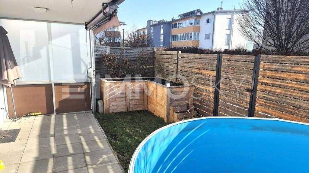 - TEILMÖBLIERT - OFFENER HELLER WOHN- ESSBEREICH MIT PLANUNGSKÜCHE - WOHNRAUMLÜFTUNG - BODENHEIZUNG - EINGEZÄUNTER EIGENGARTEN MIT POOL UND HOCHBEET - MARKISE BEI DER TERRASSE VERBAUT - PKW-STELLPLATZ - GROSSES KELLERABTEIL
