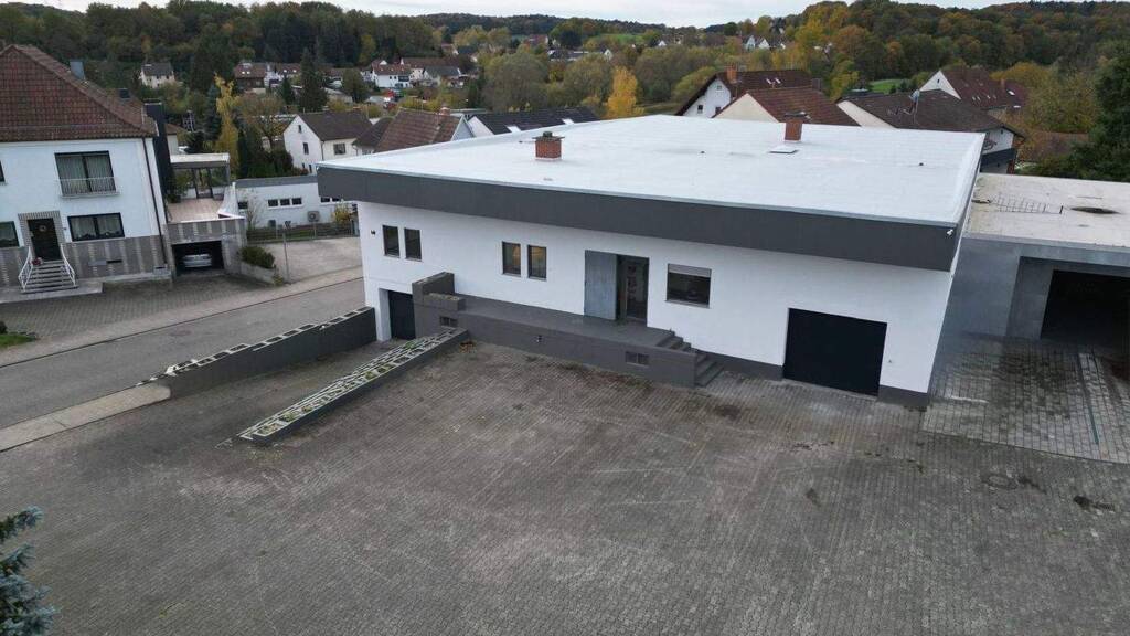 Die Halle verfügt über zwei Tore, die eine unkomplizierte Anlieferung und Nutzung ermöglichen. Eine Ölheizung ist vorhanden, und ausreichend Stellplätze im Außenbereich stehen zur Verfügung.