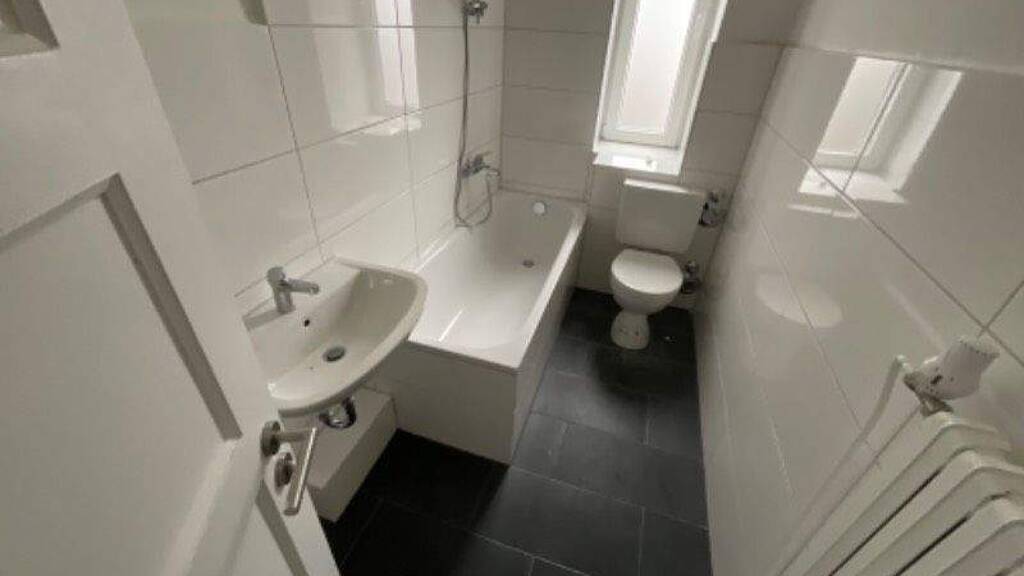 Neues Tageslichtbad mit Badewanne Laminatboden Isolierverglasung gepflegt Keller Fernwärme Denkmalschutz