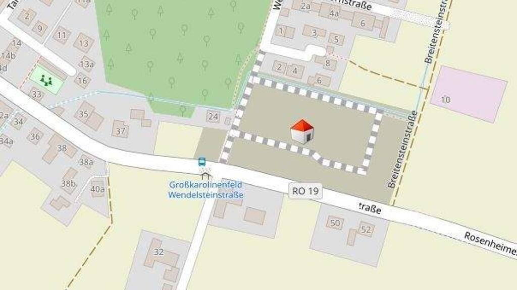 Dieses interessante Baugrundstück, bebaubar mit zwei Zweifamilienhäuser, befindet sich in sonniger Ortsrandlage von Großkarolinenfeld.