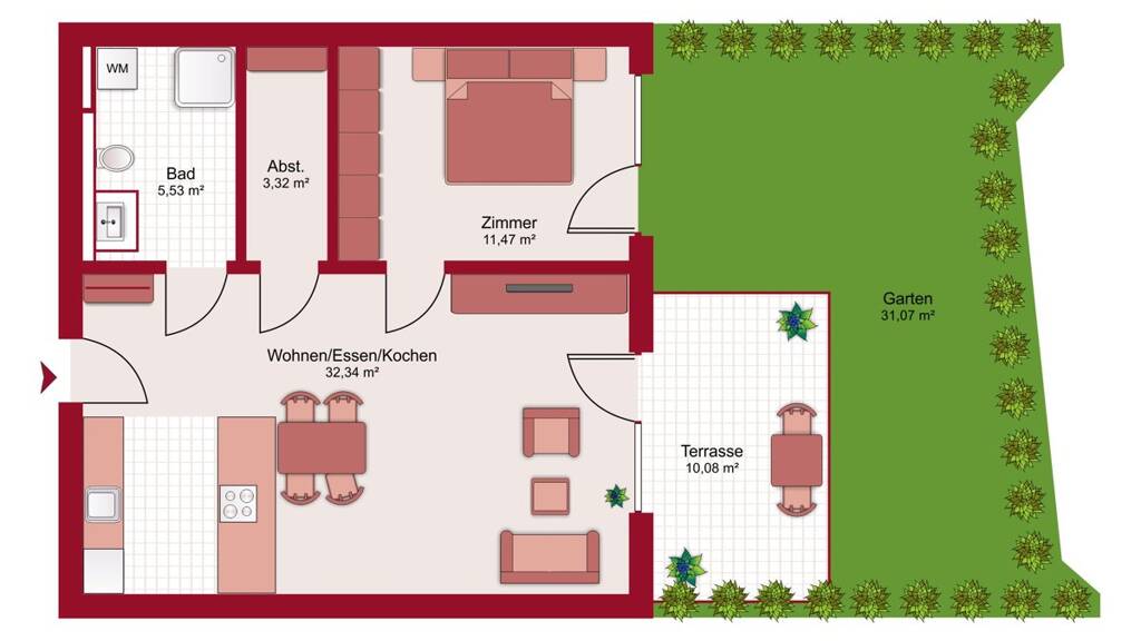 2 Zimmer • 52,7 m² • 1. Geschoss
